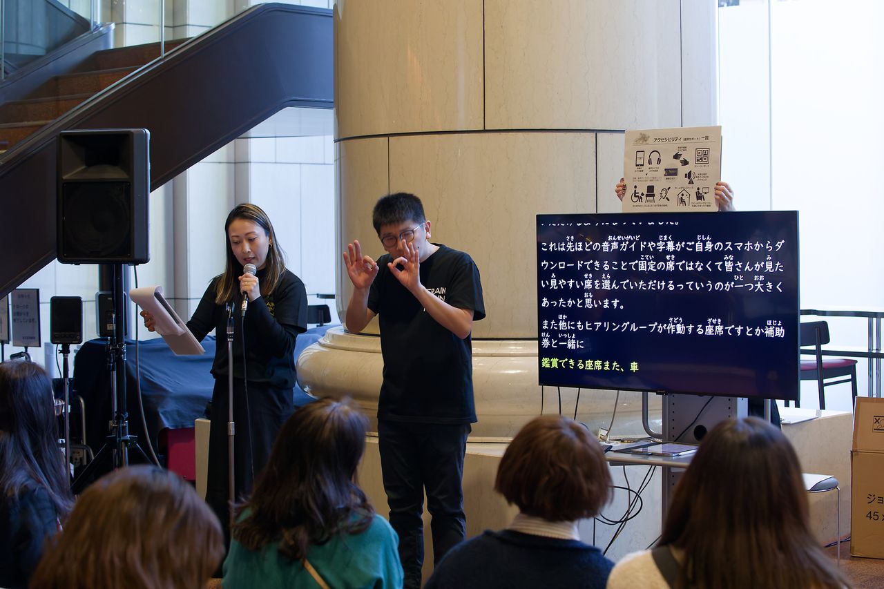 In addition to the interpreting skills required in art galleries, museums, theaters, etc., the three students also learned knowledge of the production process of cultural projects during the training, and participated as sign language interpreters in this work at the Tokyo Metropolitan Theatre, where diverse personalities gather regardless of disability, gender, or nationality.